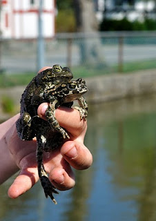 En dejlig frisk dreng fiskede lige et par frøer op af branddammen. Han ville skille dem ad, men det fraråede vi ham.. så da frøerne blev sluppet ud igen, kunne de fortsætte deres kærlighedsliv i fred.